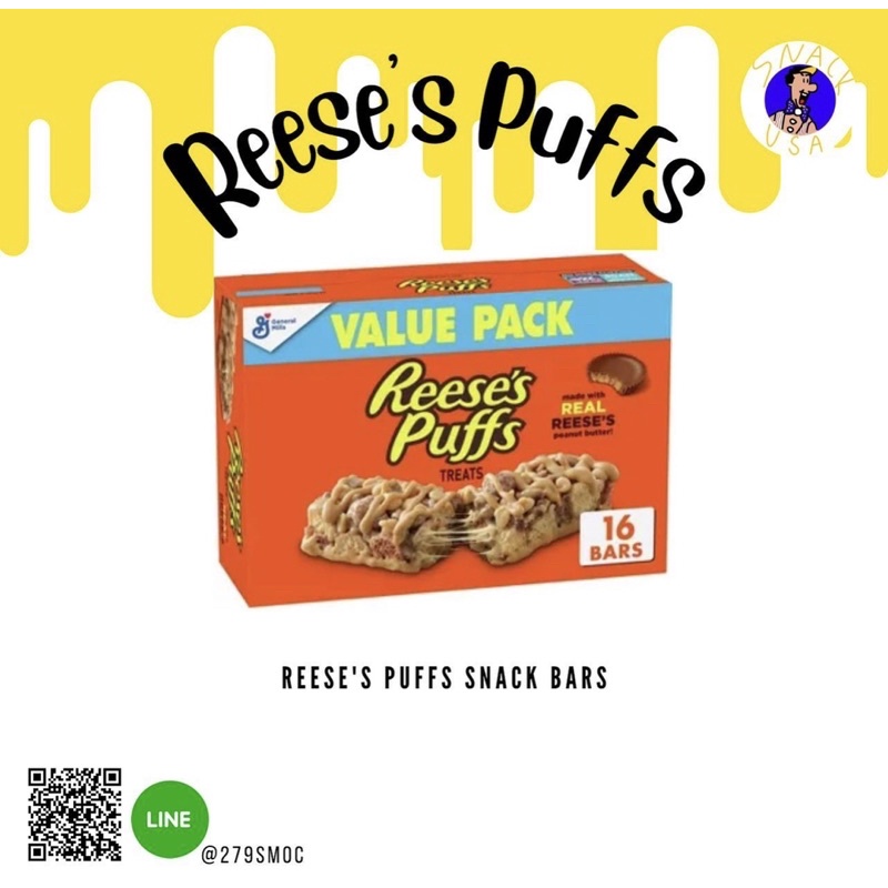 Reese's Puffs Peanut Butter & Coco Cereal Bars Allergy and Ingredient ... Reese's Puffs Peanut Butter & Coco Cereal Bars You'll love the delicious taste of Reese's Puffs Cereal in a chunky, chewy, convenient bar100 calories per bar, UPC Code 016000402690 Manufactured by General Mills, Inc. ... Nutrition Label. Nutrition Facts. Serving Size 1.00 bar. Amount Per Serving. Calories 100 Calories from Fat 35 % Daily Value*