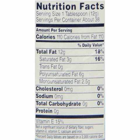 Crisco Pure Canola Oil Allergy and Ingredient Information - Allergen Inside Nutrition Label Nutrition Facts Serving Size 1.00 tablespoon Amount Per Serving Calories 120 Calories from Fat 120 % Daily Value* Total Fat 14g 21.53% Saturated Fat 1g 5% Trans Fat 0g Cholesterol 0g 0% Sodium 0g 0% Total Carbohydrates 0g 0% Protein 0g Vitamin A 0% Vitamin C 0% Calcium 0% Iron 0% Vitamin E 20%