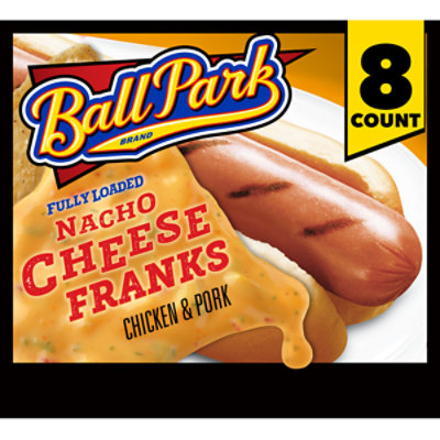 Ball Park Franks Cheese Franks - Complete Nutritional Information Ball Park Franks Cheese Franks (1 frank) - Calories: 180, Carbs: 3g, Fat: 16g. See the complete nutrient food label for this food. ... Calories - At this serving size there are 180 Calories per serving. A closer look shows: 150 Calories from Fat, 24 Calories from Protein, and 12 Calories from Carbohydrate. ...