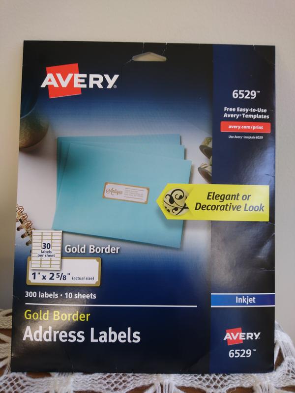 All Templates | Avery.com Template 6529. Address Labels with Gold Border. Template 6529. 1" x 2-5/8". White · Template presta-94102. Square Labels. Template Presta® 94102. Avery Gold Bordered Labels Inkjet Printers, Pack of 300 ... Product # 6529. 1" x 2-5/8"; Rectangle; Gold Border; Inkjet; Permanent Adhesive; 10 Sheets; 30 Labels per Sheet; 300 labels. Template 6529 Printing FAQs ...