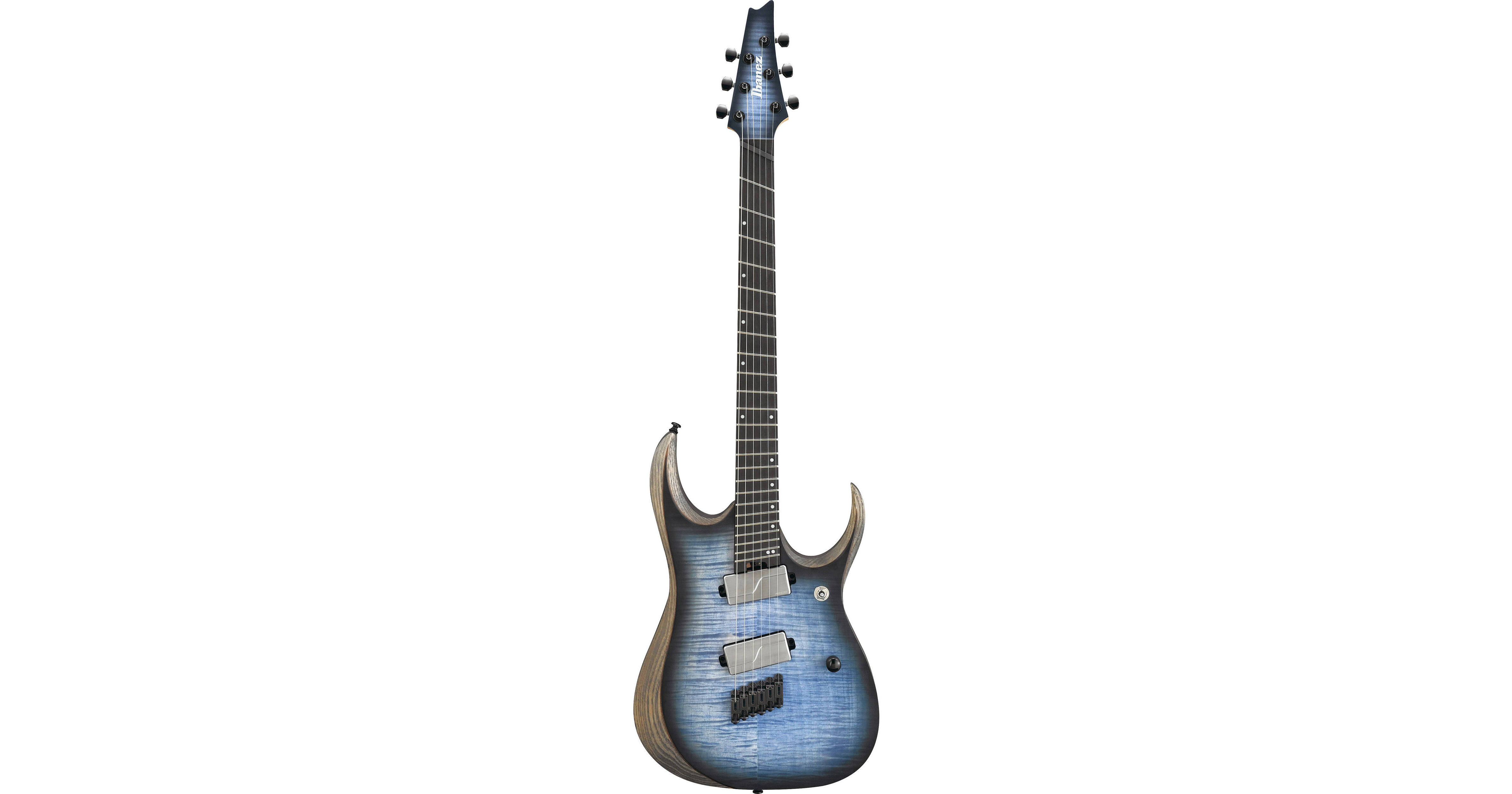 Ibanez Iron Label RGDIM6FM - Cerulean Blue Burst Flat The Iron Label RGDIM6FM carries on that tradition, and it adds a multi-scale fret design for incredible down-tuned punch while keeping the higher strings feeling familiar and sounding clear. And Fishman Fluence Modern Humbucker pickups will push your amp into tight, aggressive distortion with a powerful attack — and no unwanted noise. ...