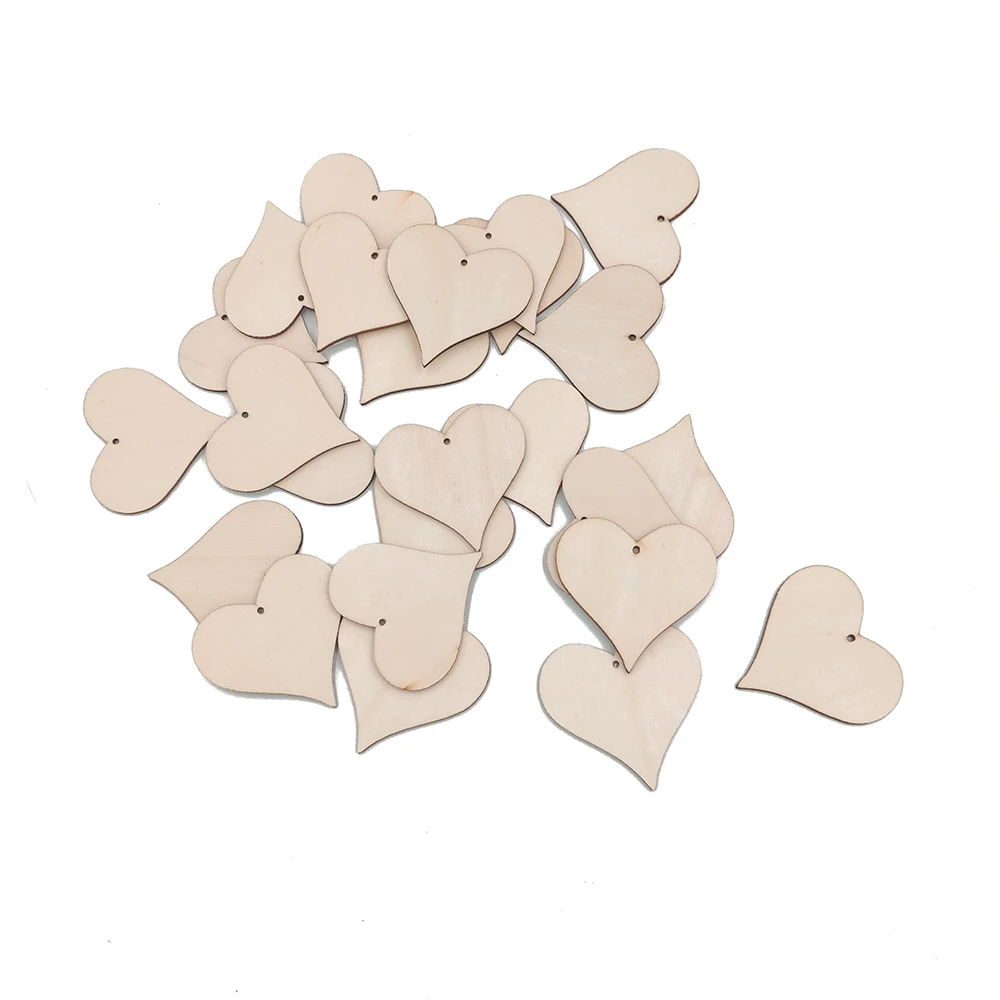 Wooden Love Heart Slices Blank Name Tags Wood Labels Art Craft Pieces for Wedding DIY Projects Card Making