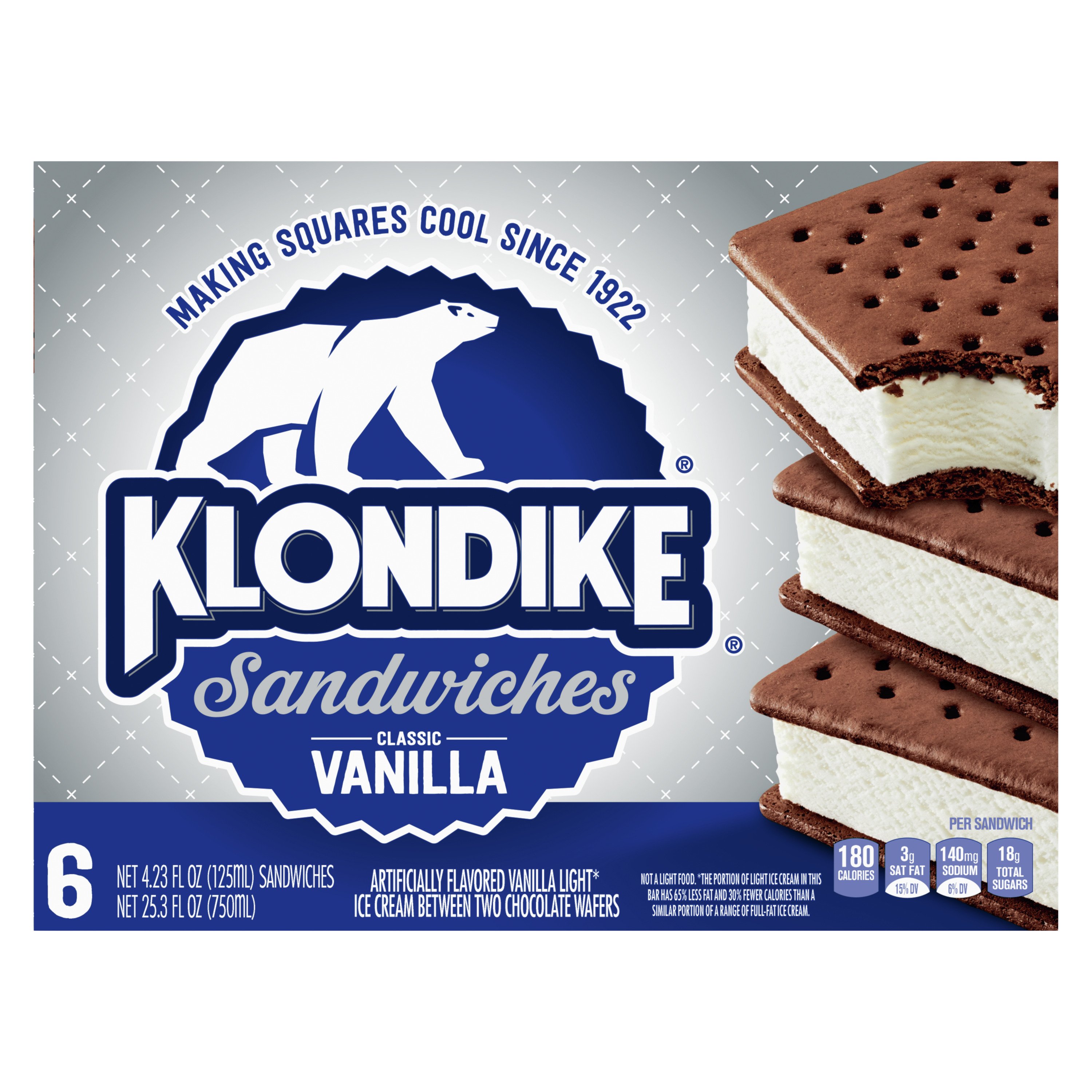 The Original Ice Cream Bar | Klondike® Nutrition Facts Serving size based on 6 ct multipack: 1 bar (85g) Amount per serving Calories: 250 Ingredients