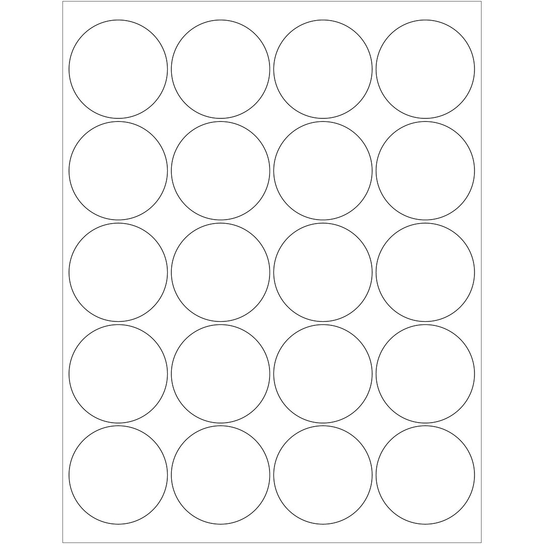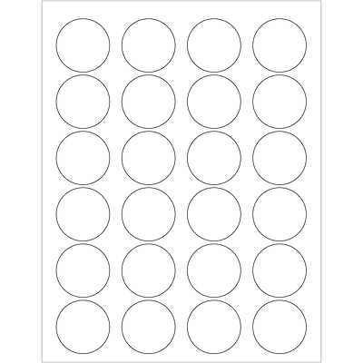 Aviditi Tape Logic 1 5/8" Clear Circle Labels, for Laser Printers, Permanent Adhesive, 8 1/2" x 11" Sheet, 24 Labels Per Sheet, 100 Sheets