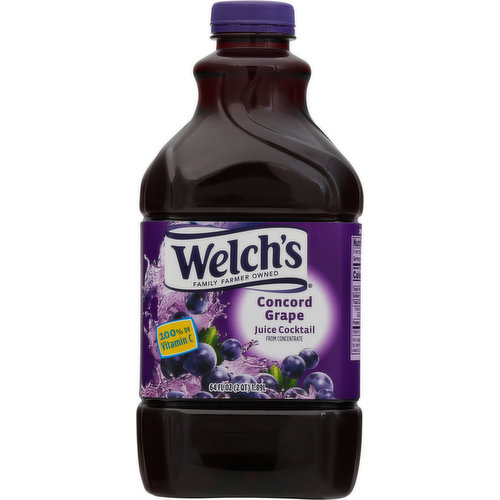 100% Concord Grape Juice - Welch's Non-GMO. Two servings of fruit and 100% Daily Value of Vitamin C per 8 oz. serving. 100% of profits go to the American family farmers who own Welch's. No Sugar Added USA Grapes 2 Servings of Fruit per 8oz Helps Support Healthy Heart Excellent Source of Vitamin C Click to save in your favorite cart Change Location Size: 64 OZ BOTTLE 5.5 OZ CAN