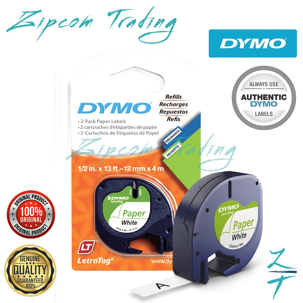 Amazon.com. Spend less. Smile more. Amazon.com. Spend less. Smile more. Browse by Solution Need | DYMO® Find the right label material, adhesive, printer/makers, & label size that you need for home & crafts, professional, & industrial use. Explore now! 10 Pack Compatible with DYMO LetraTag Refills 91330 10697 ... Package included: 10 Pack Compatible DYMO LetraTag Labeling Tape 10697 (91330 S0721510) Tape. Type: Polyester LetraTag Tape Label for Dymo LetraTag Size: 12mm (1/2") Length: 4m (13ft) Color: Black on White Paper Tape Material: Paper Certifications: ISO14001/ISO9001/RoHS Compatible with: DYMO LetraTag LT-100H, LT-100T, QX50, XR, XM, 2000, Plus LT-100H Easy to Peal: the sticker on the back is ...