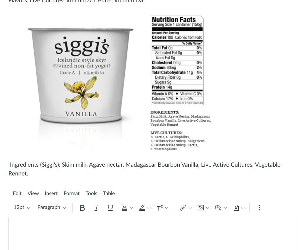 Yogurt ingredients label. Yogurt Food Label - This Nutrition Plain Yogurt Food Label Frozen Yogurt Food Label Dannon Yogurt Food Label Learn more information about yogurt food label. In this article we'll discuss yogurt food label. I'm not so certain. Greek Yogurt Food Label It may also take up to 17 years before poll findings make it into everyday scientific exercise. Plain Almond Dairy-Free Yogurt Alternative | Silk® Free of cholesterol, dairy, soy, lactose, gluten, carrageenan, casein, and artificial flavors Verified by the Non-GMO Project's product verification program *Up to 5% DV Vegan Dairy-Free Non-GMO Project Verified Gluten-Free Nutritional Facts Ingredients Size Learn more about Dairy-Free Yogurt Alternative PLANT YOURSELF IN THE KITCHEN siggi's Icelandic yogurt - Vanilla Non-Fat Sodium 55mg 2% Total Carbohydrate 11g 4% Dietary Fiber 0g 0% Total Sugars 9g Includes 5g Added Sugars 10% Protein 16g 32% Vitamin D 0mcg 0% Calcium 140mg 10% Iron 0mg 0% Potassium 180mg 4% * Percent Daily Values are based on a 2,000 calorie diet share it ingredients mailchimp.comMarketing, Automation & Email Platform | Mailchimp Grow your business on your terms with Mailchimp's All-In-One marketing, automation & email marketing platform. Easy to use - start for free!