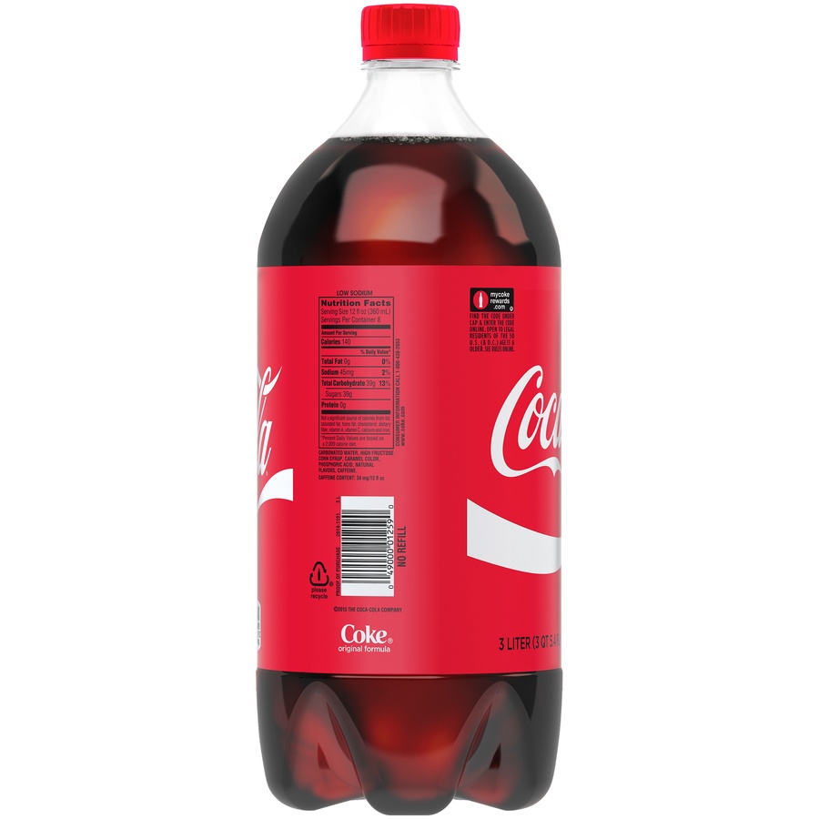 Coca-cola - 2 L Bottle : Target Highlights. 2L bottle of Coca-Cola Original Taste—the refreshing, crisp taste you know and love. Great taste since 1886. 34 mg of caffeine in each 12 oz serving. 67.6 FL OZ in each bottle. This sparkling beverage is best enjoyed ice-cold for maximum refreshment. 2 Coca Cola 2 Liter bottles (coke 2l 2pk) Nutrition Facts 2 Coca Cola 2 Liter bottles (coke 2l 2pk) LOG. View Diet Analysis Close. KEY FACTS (learn about health benefits or risks) ... Nutrition Facts. 2 Coca Cola 2 Liter bottles (coke 2l 2pk) Serving Size: serving (100g) * Amount Per Serving ; Calories: 0 cal : Calories from Fat: 0 cal % Daily Value : Total Fat: 0 g : 0%: Diet Coke® Soda Bottle, 2 liter - Kroger Shop for Diet Coke® Soda Bottle (2 liter) at Kroger. Find quality beverages products to add to your Shopping List or order online for Delivery or Pickup. ... 2 liter UPC: 0004900005011. Purchase Options. Located in AISLE 31. Pickup SNAP EBT Eligible $ 3. 49. Delivery $ 3. 49. ... , nutritional, or proper usage information than the information ...